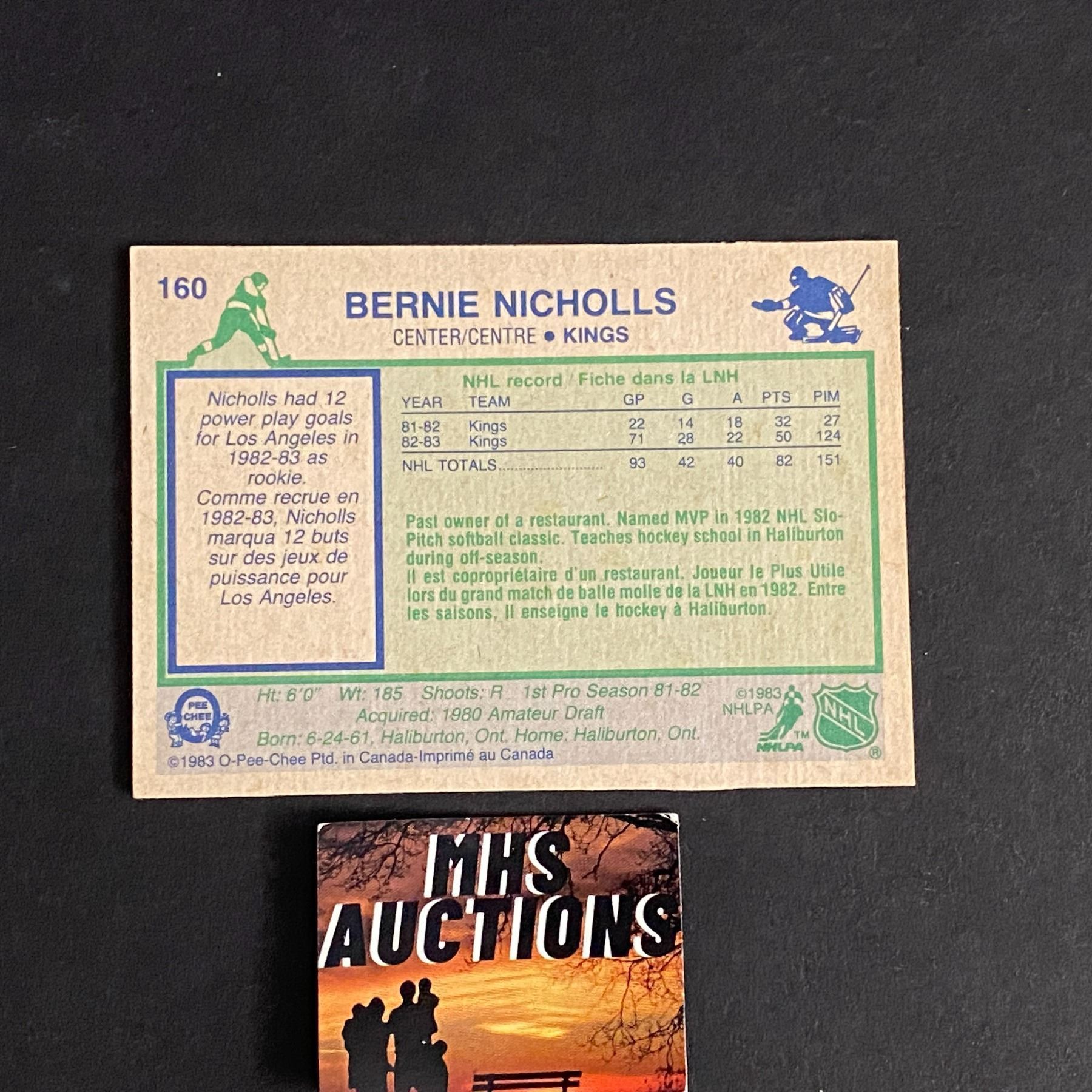 BERNIE NICHOLLS 1983-84 O PEE CHEE ROOKIE HOCKEY CARD