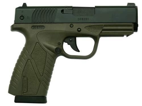 Manufacturer:Bersa Model #:BP9CC Polymer Series Type:Pistol: Semi-Auto Finish:Matte Black Stock:Olive Drab Polymer Grip Sights:RR: Interchangeable Glk Typ FT: Inter. Sig Type Barrel Length:3.3" Overall Length:6.35" Weight:21.5oz Caliber:9MM Capacity:8+1 Action:Double Action # of Mags:2 Receiver:Olive Drab Polymer W/Picatinny Rail Features:Loaded Chamber Indicator, Ambi-Magazine Release Polygonal Rifling