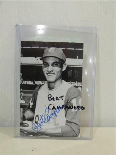BERT CAMPANERIS SIGNATURE AUTOGRAPH ON PHOTO CARD. COA STICKER FROM JSA. AS SHOWN. VI EWPICTURE FOR DETAIL. PLEASE BE ADVISED, AND INFORMED REGARDING SIGNATURES OR AUTOGRAPHS THAT WE SELL AT AUCTION: WE ARE NOT AUTHENTICATORS, AND WE DO NOT AUTHENTICATE, OR VALIDATE ANY AUTOGRAPHS OR SIGNATURES THAT WE OFFER AT AUCTION. SOME AUTOGRAPHS OR SIGNATURES MAY COME WITH AN AUTHENTICATION FROM ANY ONE OF LITERALLY HUNDREDS OF AUTHENTICATORS ACROSS THE COUNTRY, AND AROUND THE WORLD. WE DO NOT ENDORSE ANY AUTHENTICATOR, NOR DO WE GUARANTEE THAT ANY AUTOGRAPH OR SIGNATURE IS AUTHENTIC, OR THAT IT WILL PASS AUTHENTICATION BY ANY AUTHENTICATOR. ALL AUTOGRAPHS OR SIGNATURES ARE SOLD