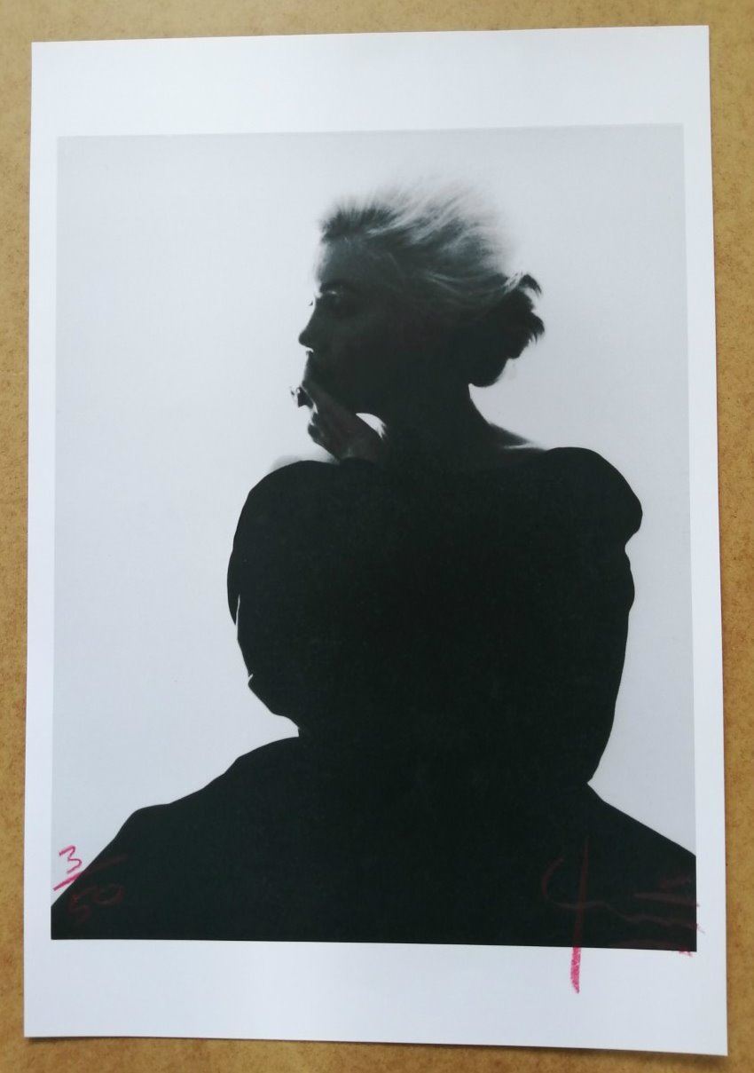 A rare image of Marilyn from the last sittings (1962), in almost a shadow. From the black dress Vogue shots. 'Marilyn in Vogue' signed by photographer Bert Stern. Digitally printed in 2002 on archival matte paper 19x13 inches. Image: 15.25x12 inches. Edition: 3/50. Supplied with Bert Stern coa. Bert Stern was one of the leading photographers of the 1950s and 1960s. Like his contemporaries Richard Avedon and Irving Penn, Stern pioneered a new photographic aesthetic, preferring uncluttered and emotionally direct images that strove not only to showcase the human figure but also to capture a sense of the subject’s psychology. Encouraged to pursue photography by Stanley Kubrick, Stern’s reputation quickly grew as he worked for commercial companies such as Revlon. He became a mainstay for fashion magazines like Vogue, and his portfolio featured such superstars as Twiggy, Truman Capote, and Audrey Hepburn. Stern famously captured Marilyn Monroe in The Last Sitting, the actress’s last group of portraits taken six weeks before her death.
