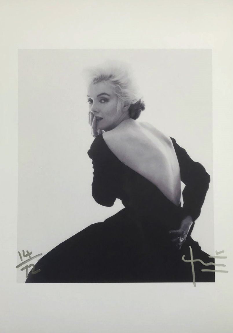 Marilyn Monroe in the Christian Dior dress for Vogue in 1962. Bert captures the back of Marilyn turning around looking at him. Digital glossy print from 2002, signed by Bert Stern. Image: 11x9 inches. Copyright stamped on verso, and supplied with Bert Stern's coa.