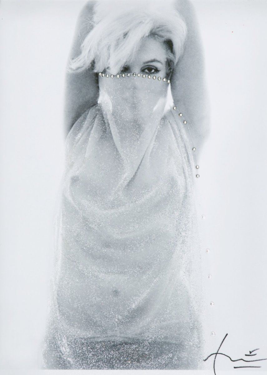 Bert Stern's Marilyn Monroe Arabian poster. In 2010, Lisa and Lynette Lavender worked with Bert Stern on his reinvented show to show Marilyn in a new way through gemstones and crystals encrusted on the photos. The originals were first shown at an exhibition in New York in 2012 to commemorate the 50th anniversary of Marilyn's death. This is a limited edition fine art print on photo matte archival paper taken of the original jewelled piece with a facsimile Bert Stern. Edition: 6/250. Paper size: 13x19 inches. Image: 12x13 inches. Supplied with a coa from Lisa and Lynette Lavender.