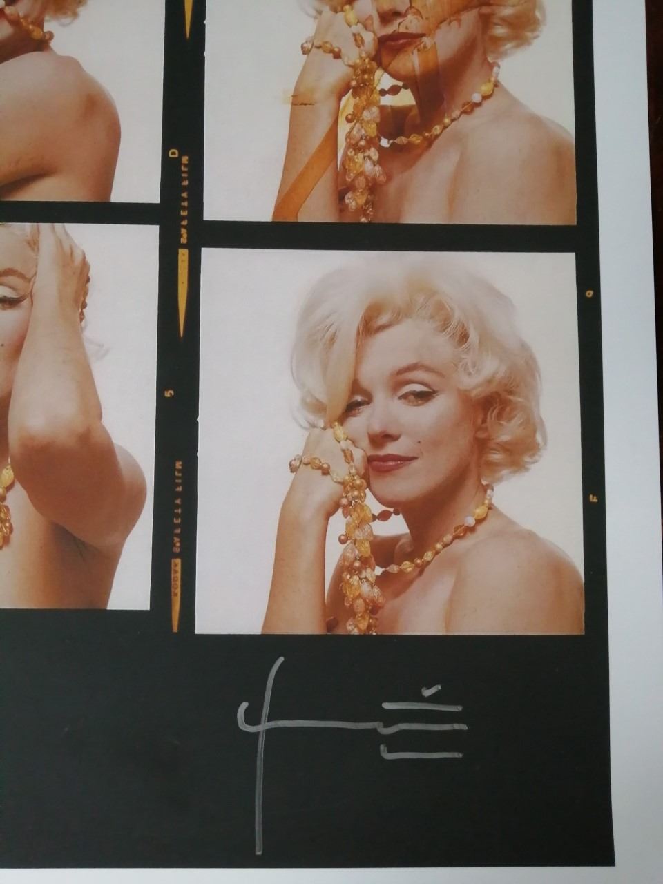 A collage of the last sitting, printed in 2009 featuring rare images mostly not seen elsewhere! 12 images measuring 7 3/4 square each. Signed by Bert Stern and copyright stamped on verso. Supplied with Bert Stern coa.