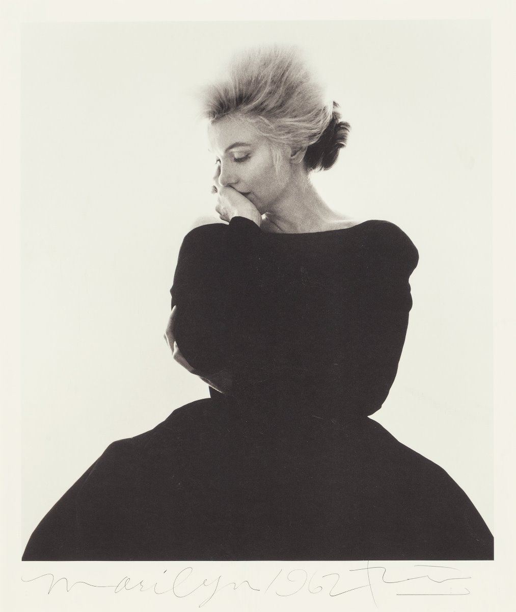 Bert Stern's iconic image of Marilyn in black dress for Vogue. Silver gelatin. Signed by Bert Stern in pencil on the front of the photo, and stamped edition of 3000 by Bert Stern. 22x19 inches.