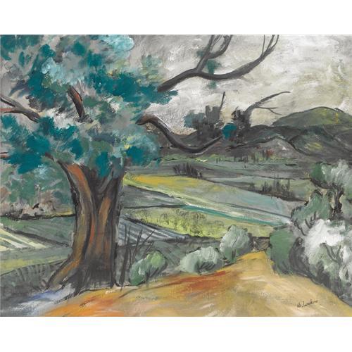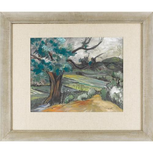 <B>BERTHA LANDERS (1911-1996)</B></I><BR>Untitled Dirt Road, 1945<BR>Gouache<BR>18in. x 22in.<BR>Signed lower right<BR><BR>Bertha Landers attended Sul Ross State University. She also attended classes at the Dallas Art Institute, the Colorado Springs Fine Arts Center, and the Arts Students League. She was an active painter and printmaker. Her paintings or prints were exhibited in over seventy five museum shows regionally and nationally. She was a founding member of the Texas Printmakers and showed on their circuit from 1940 to 1960.<BR><BR>Provenance:<BR>Acquired by descent from the artist by the present owner<BR><BR> <B>Condition Report:</B> Excellent condition. Period frame in excellent condition.<BR><BR><b>Shipping:</b> Requires 3rd Party Shipping (<a target="_blank" href="http://www.heritageauctions.com/common/shipping.php">view shipping information</a>)