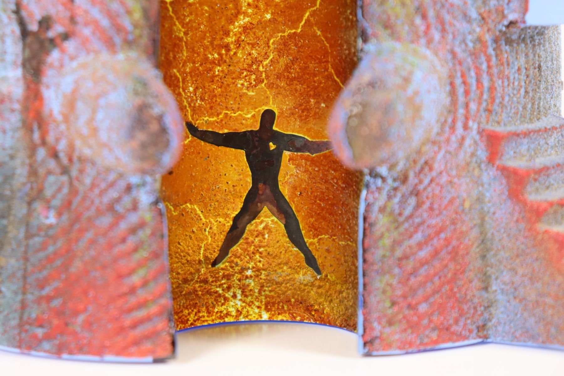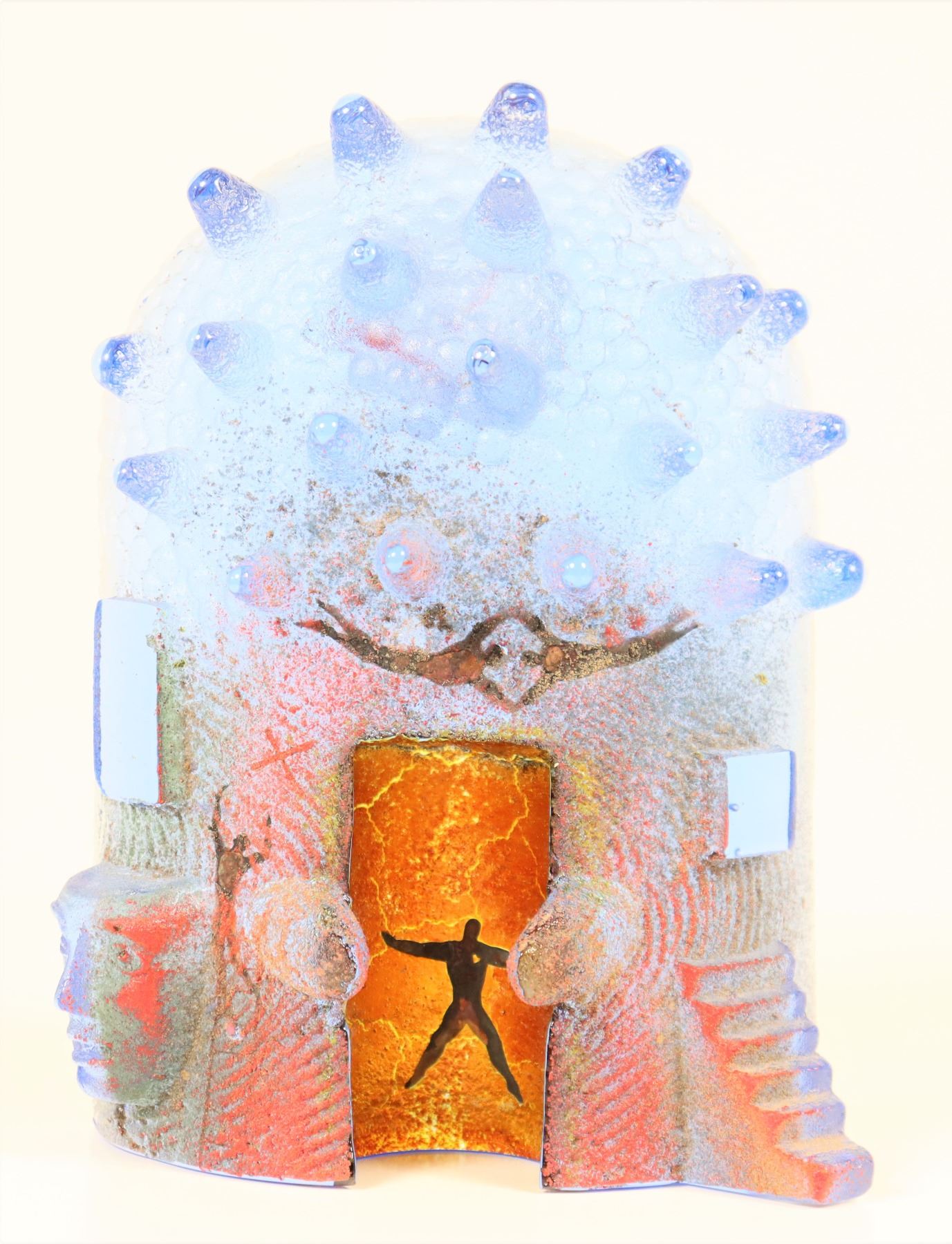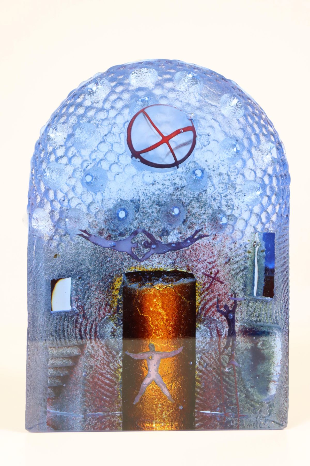 Exceptional Bertil Vallien Kosta Boda limited edition glass sculpture, titled "Portal." 2003. Signed Kosta Boda on the underside. 2 minor flea bites, included in photos. Size: 6 1/2 x 2 1/2 x 8 1/2 in.