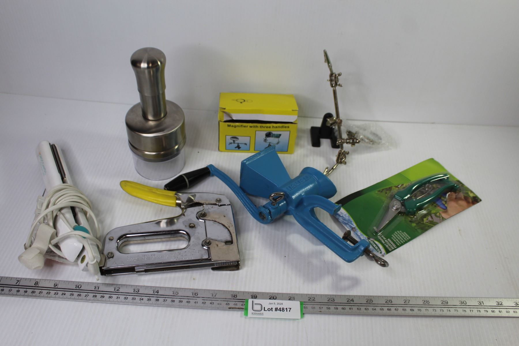 BES.BESCH Grinder - Food Chopper - Arrow Stapler - 3 Handled Magnifier - Curling Iron Offset Pruner