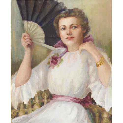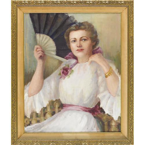 <B>BESSIE GAGE LARSEN (b. 1889)</B></I><BR>Untitled Portrait of a Woman, 1959<BR>Oil on canvas<BR>31in. x 35in.<BR>Signed and dated lower right<BR><BR>Bessie Gage Larsen was from Dallas. She exhibited in the Texas Centennial, the Annual Texas Artists Exhibition, and the Frank Reaugh Art Club.<BR><BR> <B>Condition Report:</B> Excellent condition. Period frame in excellent condition.<BR><BR><b>Shipping:</b> Requires 3rd Party Shipping (<a target="_blank" href="http://www.heritageauctions.com/common/shipping.php">view shipping information</a>)