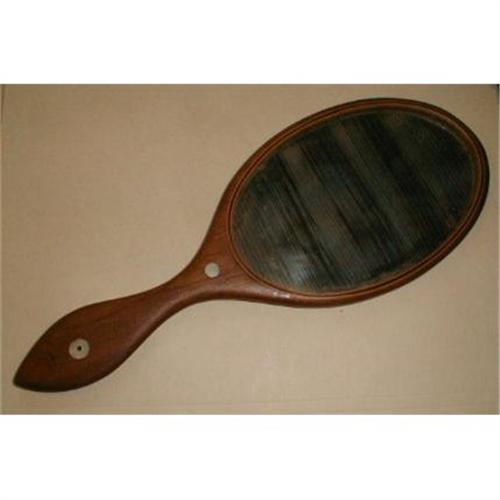 <table width="100%" border="0" cellspacing="0" cellpadding="4"><tr><td><em> </em></td></tr><tr> <td width="100%"> This is one of the best Shaker hand mirrors that I have seen. It is 11 1/4" long and has a shaped handle that is Mother Of Pearl inlaid. The mirror plate has conforming inlaid borders on the frame and the back side is stamped "10". The original looking glass had some age discoloring...it was made in the 19th century by the Shakers and is in very good condition. </td></tr><tr> <td> </td></tr><tr> <td>Reference #: 106</td></tr><tr><td>Condition:VERY GOOD</td></tr><tr><td>Year:19TH CENTURY</td></tr><tr><td>Country:USA</td></tr><tr><td>Title:BEST 19TH CENTURY SHAKER HAND MIRROR</td></tr><tr><td>Materials:WOOD & GLASS</td></tr><tr><td>Location:Southampton, MA</td></tr></table>