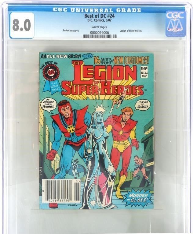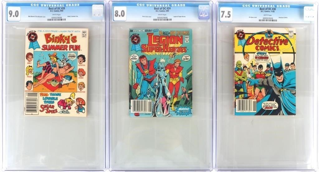 Best of DC #24, 28, & 30 CGC graded DC Comics to include one Best of DC #24 CGC 8.0 featuring the Legion of Super-Heroes, one Best of DC #28 CGC 9.0 featuring Binky's Summer Fun, and one Best of DC #30 CGC 7.5 featuring Detective Comics.