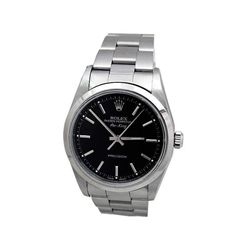 34MM Rolex Stainless Steel Oyster Perpetual Airking Watch. Black Dial. Stainless Steel Smooth Bezel. Stainless Steel Oyster Band. Style 14000.