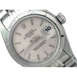 Lady's Rolex Stainless Steel Oyster Perpetual Date Watch. Silver Dial. Stainless Steel Engine Turn Bezel. Stainless Steel Jubilee Band. Style 69...