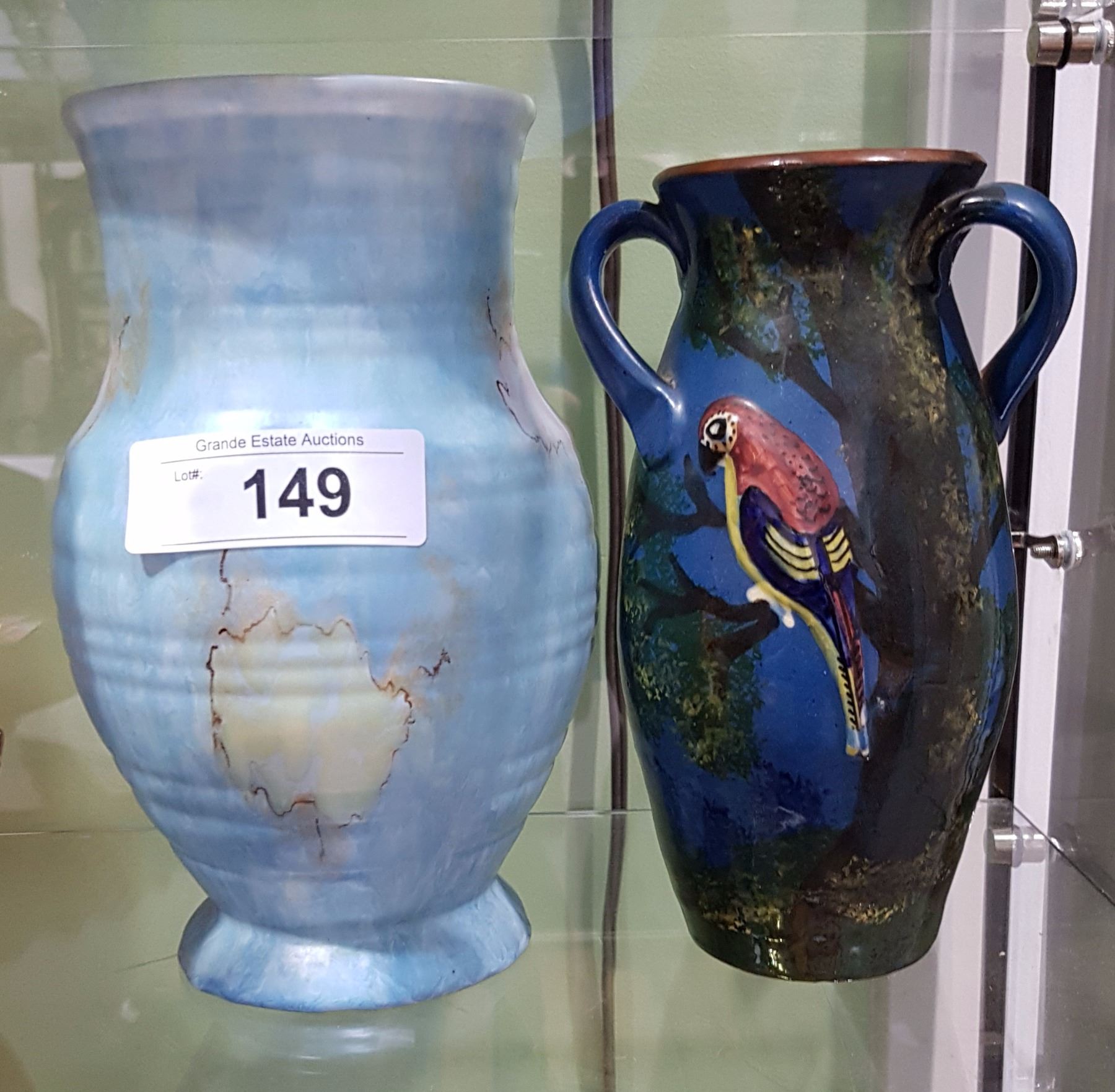 BESWICK VASE AND HAND PAINTED VASE W/BIRD MOTIF