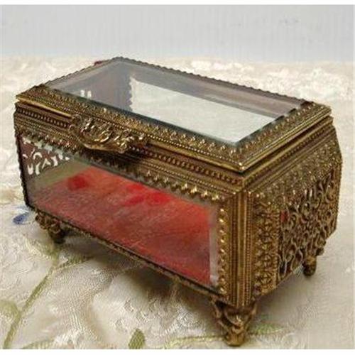 <tr><td>Title:BEVELED GLASS&FILIGREE JEWELRY BOX </td></tr>