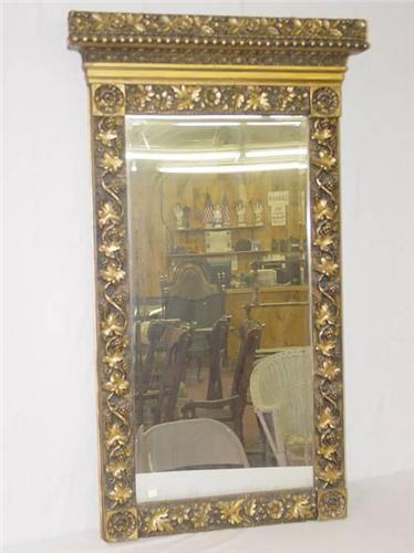 BEVELED GLASS HALL MIRROR W/ CARVED PLASTER AESTETIC MOVEMENT VICTORIAN DECORATED FRAME (35 1/4" X 17 1/2") -FRAME IMPERFECTIONS;