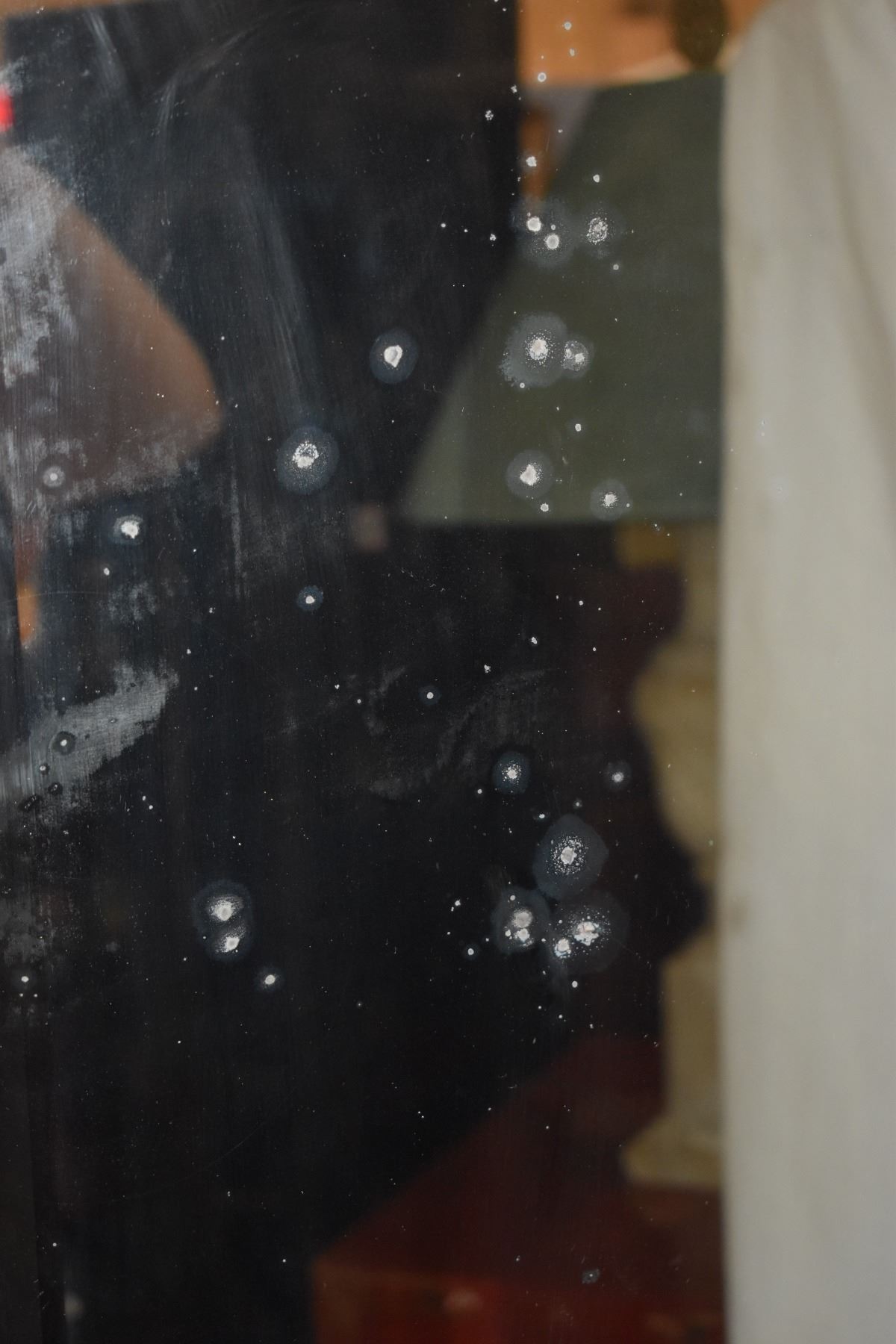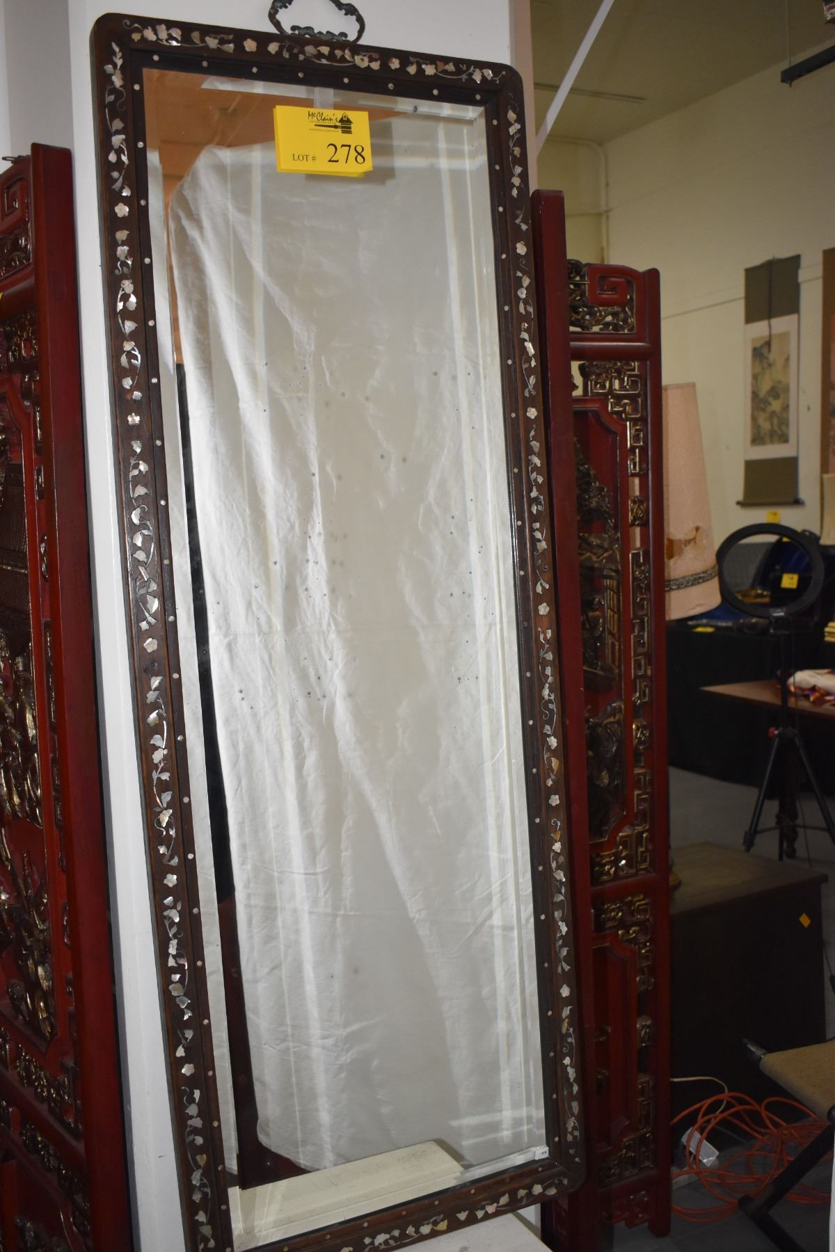 BEVELED WALL MIRROR W/HARDWOOD FRAME & MOTHER OF PEARL INLAY