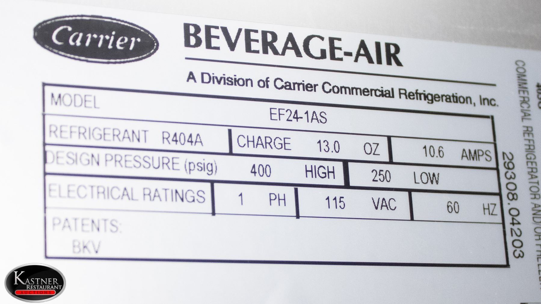 CASTORS MODEL # EF24-1AS, 10.6 AMPS, PHASE 1, 115VAC, 60HZ 31" X 26" X 84" ** MISSING HANDLE ** *** FREEZER DOES NOT GET COLD & CAN NOT BE HEARD RUNNING *** ** SOLD AS IS NO REFUNDS NO RECONSIGNMENT **