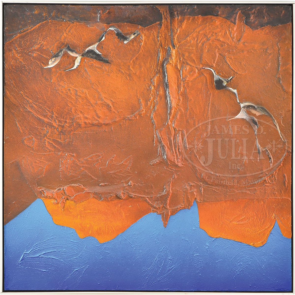 Acrylic on canvas Housed in a simple white-fronted wood slat frame Signed and titled on verso SIZE: 48" x 48". Overall: 49-1/4" x 49-1/4". CONDITION: Very good. 9-29930