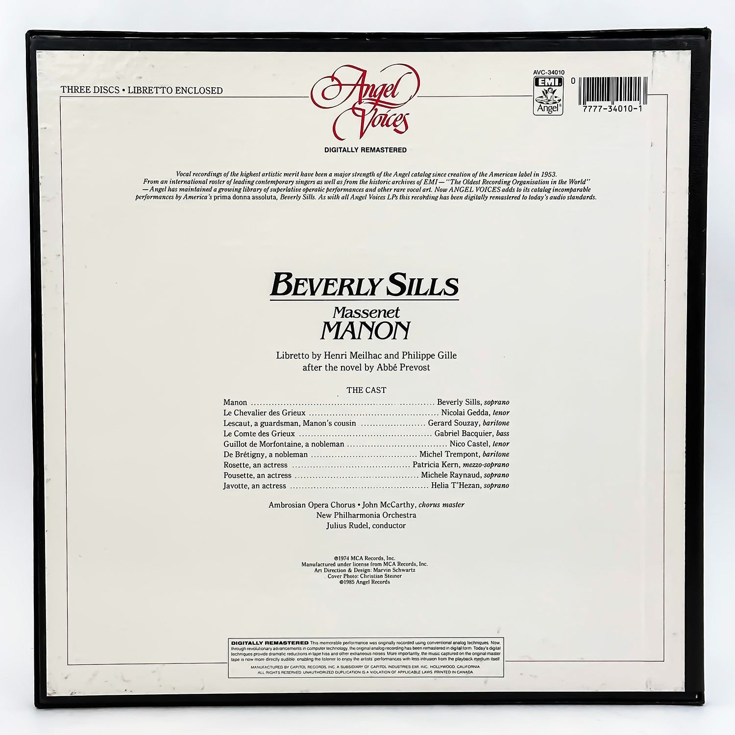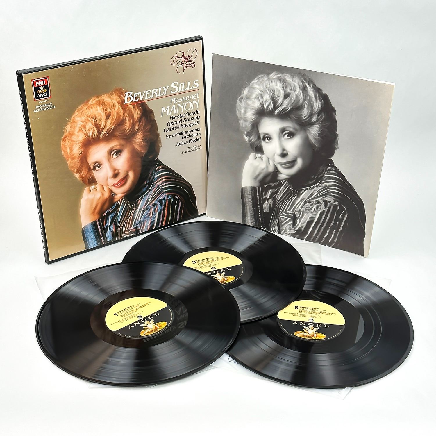 #9584 - 3X VINYL LP BOX SET & INFORMATIONAL INSERT. RECORD ALBUM FROM PRIVATE COLLECTION OF CLASSICAL/OPERA RECORDS. CLASSICAL, ROMANTIC, OPERA. BEVERLY SILLS - MASSENET MANON. NICOLAI GEDDA, GERARD SOUZAY, GABRIEL BACQUIER. NEW PHILHARMONIA ORCHESTRA - JULIUS RUDEL. ANGEL VOICES - EMI ANGEL RECORDS AVC-34010