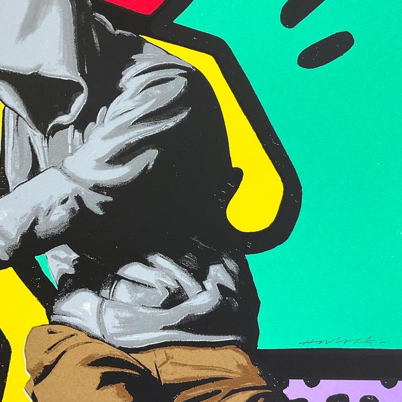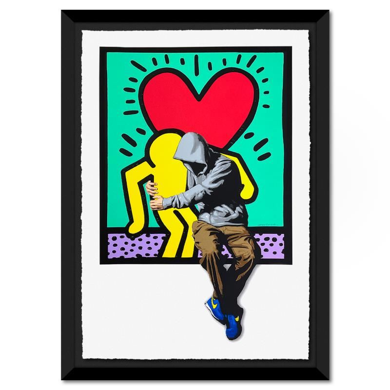 "BFF" is a limited edition silkscreen on deckle edge paper by Hijack (son of acclaimed artist Mr. Brainwash), numbered and hand signed by the artist. Includes Certificate of Authenticity. This piece comes custom framed. Measures approximately 35" x 25" (framed), 31" x 21" (image).