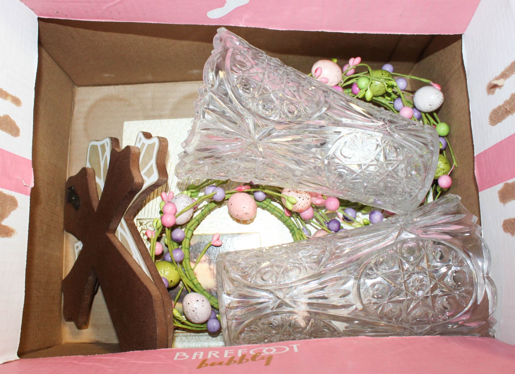 BIBLE, 2 WOODEN CROSSES, 2 VASES +