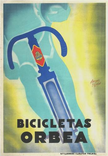 TEJADA, ANIBAL. BICICLETAS ORBEA. (1925 CA.). 100x70cm. (40x27in.). Litografía. B+. Entelado.