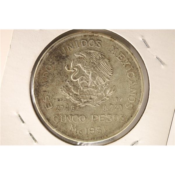 1951 MEXICO SILVER 5 PESO COIN .6431 ASW WITH