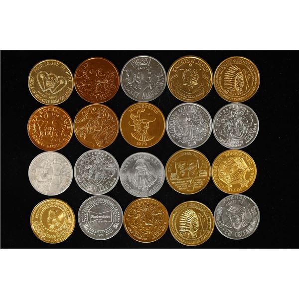 20 ASSORTED ALUMINUM MARDI GRAS TOKENS. 1 WITH