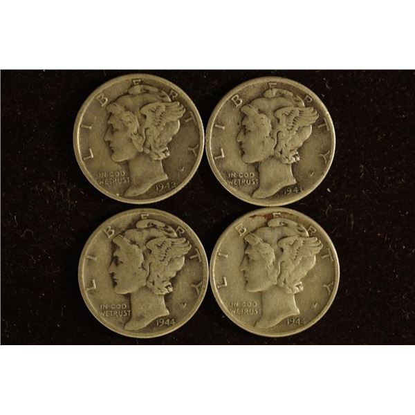 4 SILVER MERCURY DIMES: 1942, 1943 & 2-19441 - 4 SILVER MERCURY DIMES: 1942, 1943 & 2-1944