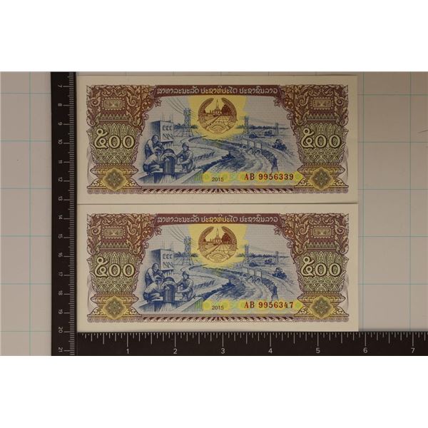 2-2015 LAOS 500 KIP CRISP UNC COLORIZED BILLS15 - 2-2015 LAOS 500 KIP CRISP UNC COLORIZED BILLS