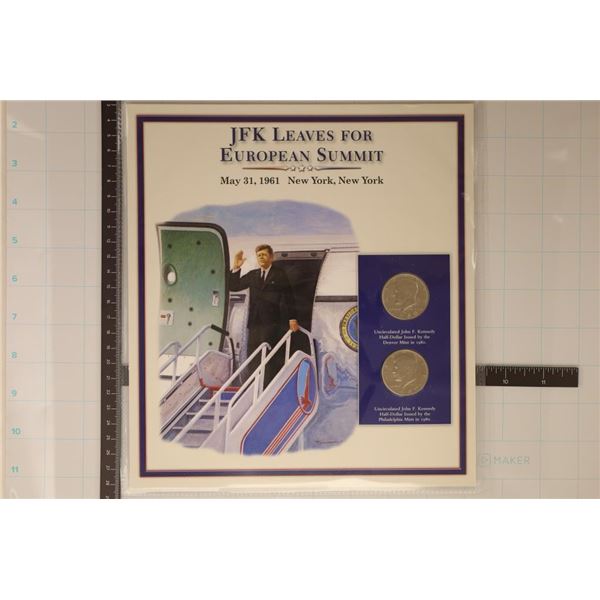 JFK LEAVES FOR EUROPEAN SUMMINT WITH UNCANCELLED STAMP IN PLASTIC SLEEVE