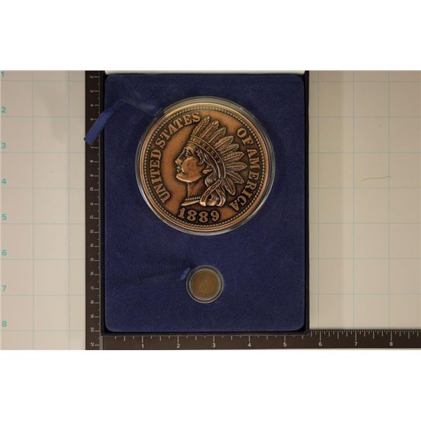 CENT AND 8.1 OZ. INDIAN HEAD COMMEMORATIVE MEDAL IN BLUE CLAM SHELL BOX BY THE US COMMEMORATIVE GALLERY