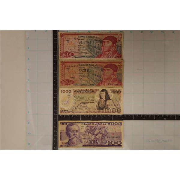 4-BANK OF MEXICO BILLS: 2-1973 20 PESO, 1974-10040 - 4-BANK OF MEXICO BILLS: 2-1973 20 PESO, 1974-100