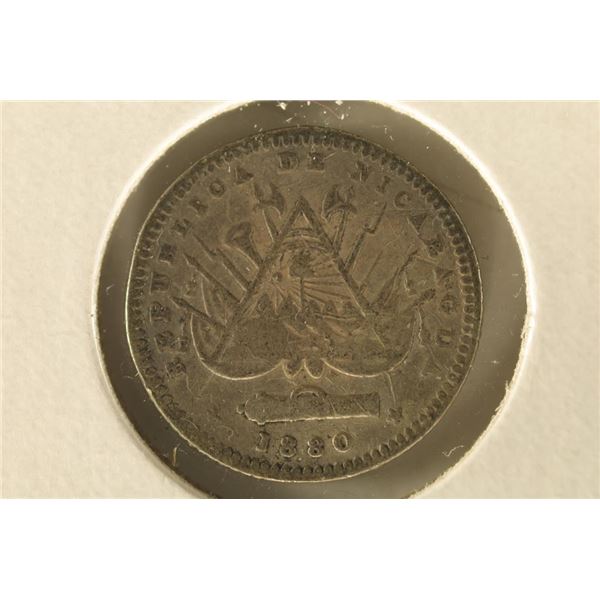 1880 NICARAGUA SILVER 10 CENTIMOS .0643 OZ. ASW44 - 1880 NICARAGUA SILVER 10 CENTIMOS .0643 OZ. ASW