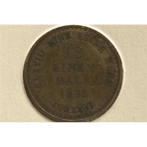 1842-S GERMAN SILVER 1/12 THALER .0446 OZ. ASW54 - 1842-S GERMAN SILVER 1/12 THALER .0446 OZ. ASW