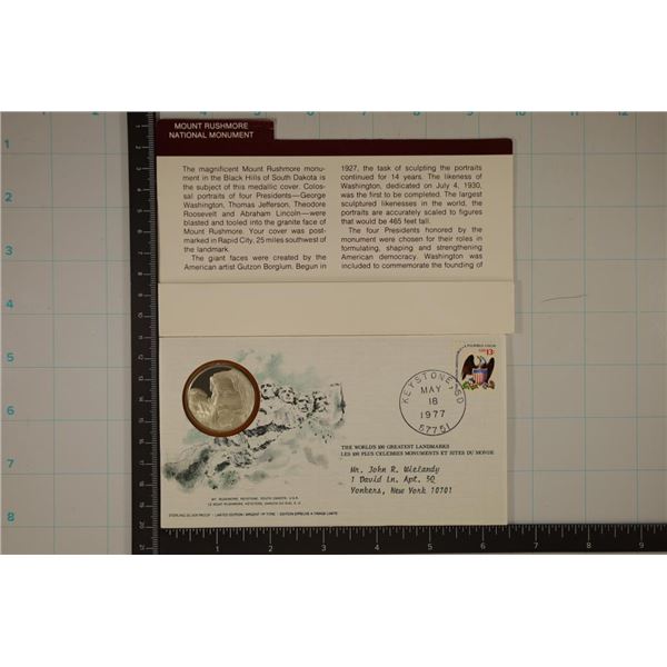 MT. RUSHMORE, A WORLD'S 100 GREATEST LANDMARKS WITH INFO CARD BY THE FRANKLIN MINT