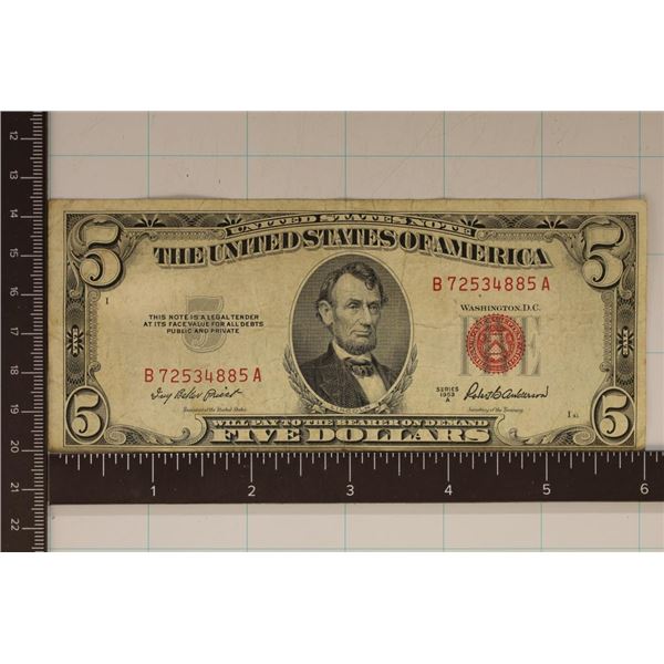 1953-A US $5 RED SEAL BILL70 - 1953-A US $5 RED SEAL BILL