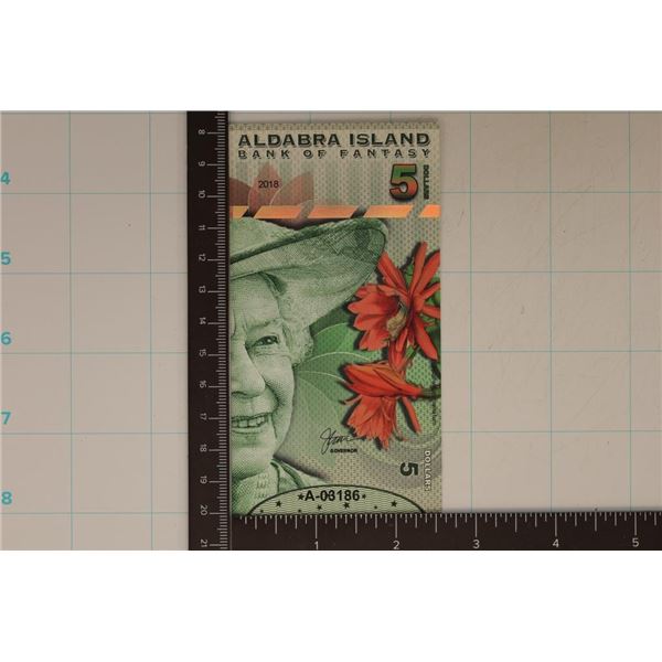 2018 ALDABRA ISLAND BANK OF FANTASY $5 CRISP UNC75 - 2018 ALDABRA ISLAND BANK OF FANTASY $5 CRISP UNC