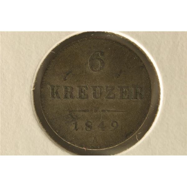 1849-A AUSTRIA SILVER 6 KRUEZER .0168 OZ. ASW84 - 1849-A AUSTRIA SILVER 6 KRUEZER .0168 OZ. ASW