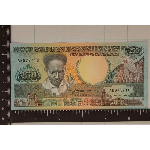 1988 SURINAME 250 GULDEN  CU COLORIZED BILL85 - 1988 SURINAME 250 GULDEN CU COLORIZED BILL