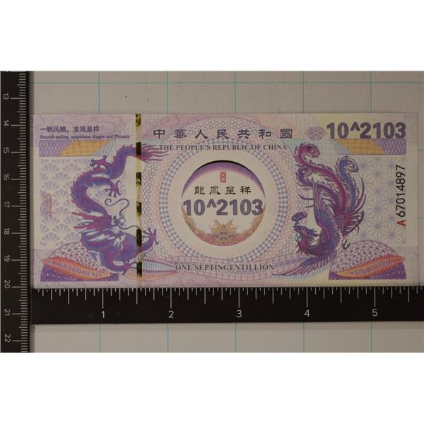 PEOPLES REPUBLIC OF CHINA 1 SEPTINGENTILLION CU95 - PEOPLES REPUBLIC OF CHINA 1 SEPTINGENTILLION CU