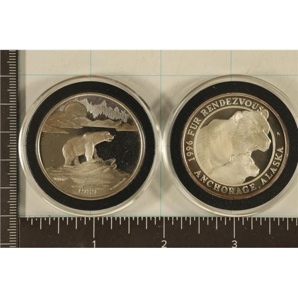 THE STATE SEAL OF ALASKA POLAR BEAR AND 1996 THE SEAL OF THE STATE OF ALASKA FUR RENDEZVOUS, BOTH IN HARD PLASTIC CAPSULE
