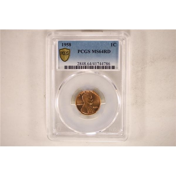 1958 LINCOLN CENT PCGS MS64RD GOLD SHIELD LABEL