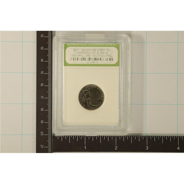 SLABBED 2005 BISON JEFFERSON NICKEL GEM UNC