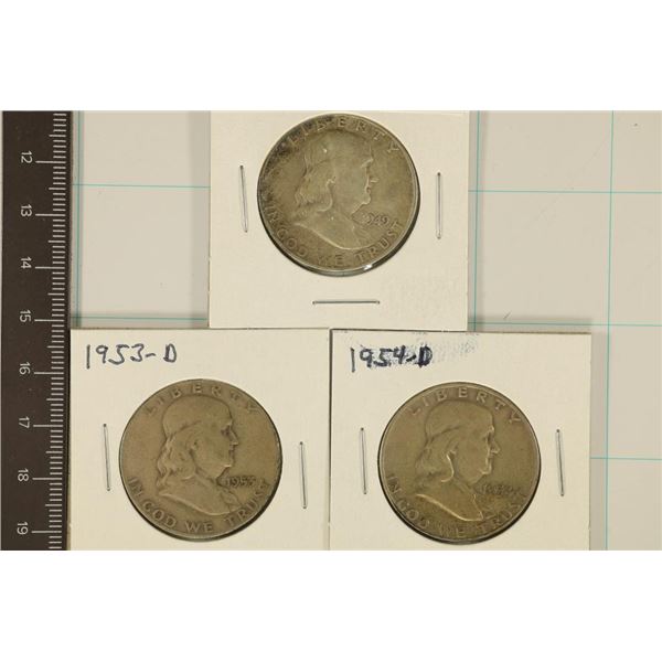 1949-D, 53-D & 1954-D FRANKLIN SILVER HALF DOLLARS
