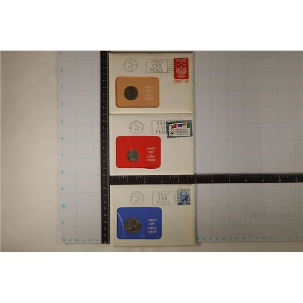 3-US COIN FIRST DAY COVERS WITH CANCELLED STAMPS