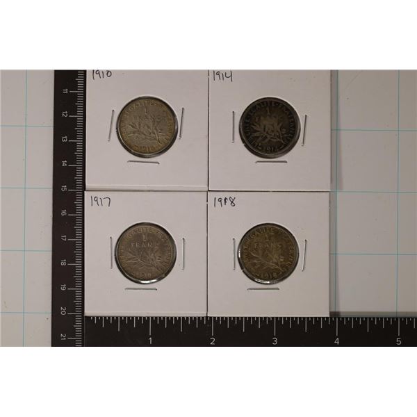 1910, 1914, 1917 & 1918 FRANCE SILVER 1 FRANCS