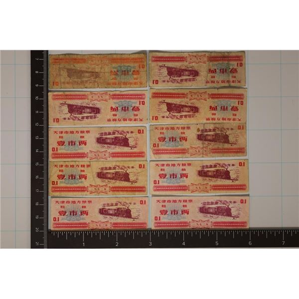 10 VINTAGE CHINESE FOOD RATION COUPONS 0.1 JIN