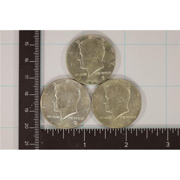 1967, 68-D & 1969-D 40% SILVER JOHN F. KENNEDY