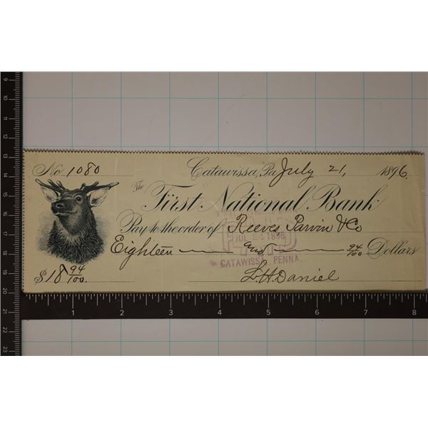 1896 FIRST NATIONAL BANK $18.94 CANCELLED CHECK